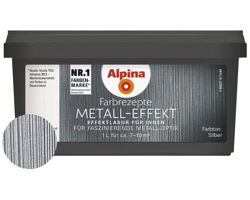 Die Metall-Effektfarbe eignet sich für glatte Wände, Raufaser und Vliestapeten. Ideal verarbeitet wird sie mit dem ALPINA ROLLER und dem Effekt-Kamm, um beeindruckende Struktureneffekte zu erzielen.